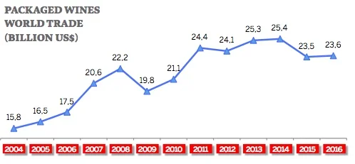 Sim, o mercado global cresce. O vinho talvez seja um dos produtos que melhor reflete o fenômeno da globalização. Basta imaginar uma prateleira de supermercado há 25 anos e hoje. Não é de se surpreender, portanto, que o mercado global tenha crescido 3.8% ao ano nos últimos 12 anos (2004-16), alcançando USD 32.7 bi. A respeito da globalização, recomendo o livro do mesmo Mike Veseth chamado Wine Wars;